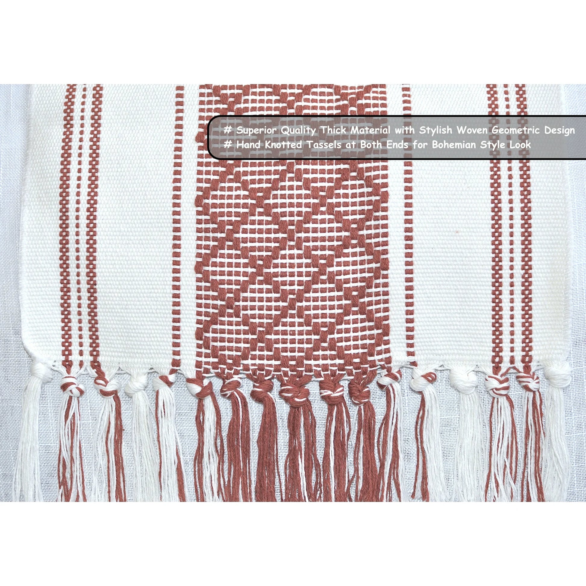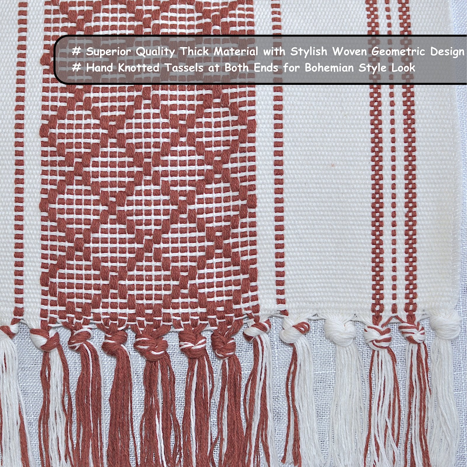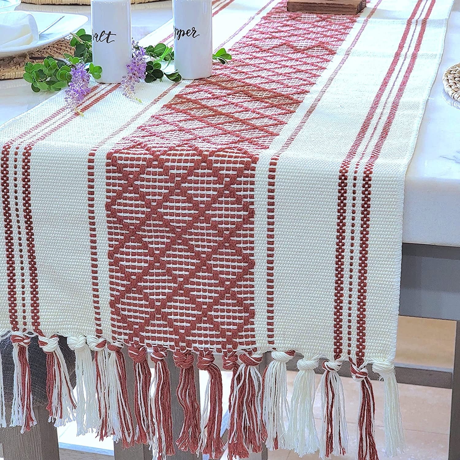 Boho Dining Table Runner with Tassels 16 x 72 Inches, Rust Brown and Cream | Boho Dresser Scarf / Farmhouse Cotton Woven Console Table or Buffet Top Cover