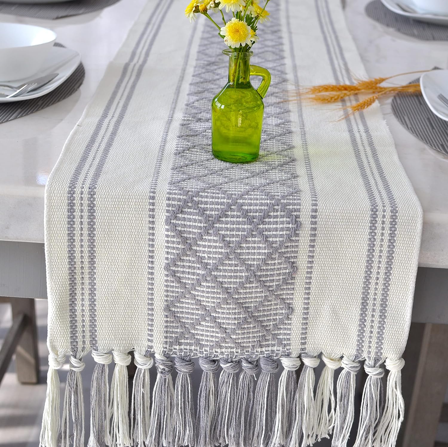 - ✅ Brighten Your Dining Room With This Stylish Table Runner: This exquisite looking table runner will catch the eyes of your guests for sure, adding bohemian flair and unique dimension to your dining table. It is made up of safe material and designed expertly & hand woven by our skilled artisans for rich, modern luxury look. The heavy weave and elegant texture of this neutral color table runner add charm to any room of your home. A tassel on both ends add extra visual interest.